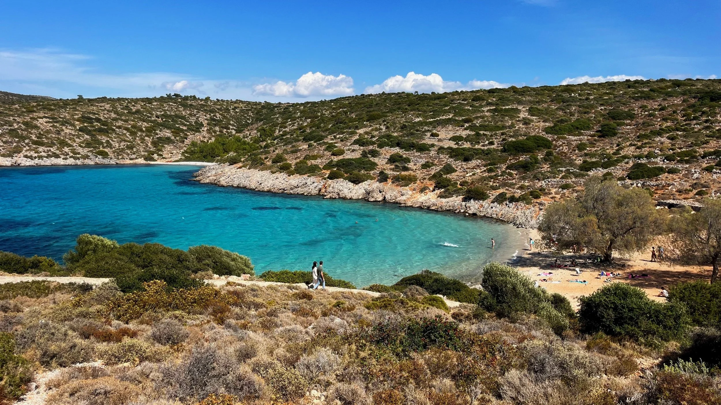 Our adventure continued as we made our way to Agia Dynami Beach, known for its stunning aquamarine waters. This beach is a true paradise, with golden sand and beautiful scenery. Despite some wind, the beach was inviting, and we couldn't resist taking a dip in the refreshing water. The locals had pointed us to this beach, and we were grateful for their recommendations.